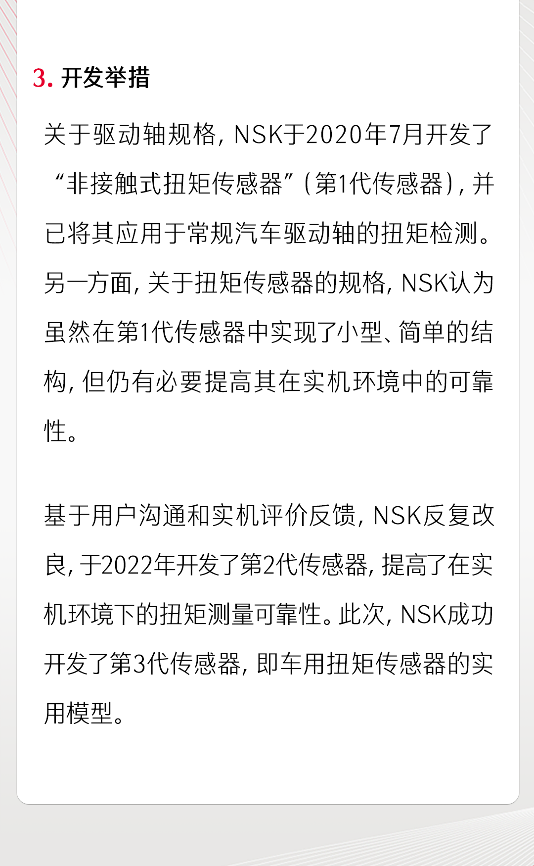 NSK成功開發(fā)車用磁致伸縮扭矩傳感器實用模型