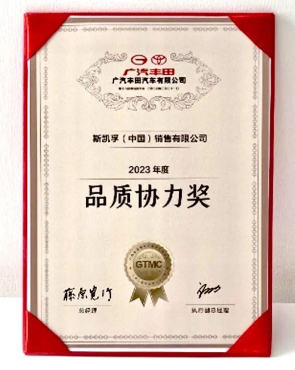 備受認(rèn)可 | 斯凱孚連續(xù)三年榮獲廣汽豐田“品質(zhì)協(xié)力獎”