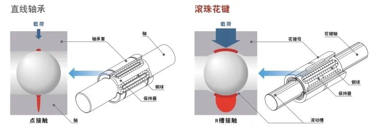 滾珠花鍵可通過(guò)單軸承受扭矩,因此與直線軸承相比,具有外圍關(guān)聯(lián)部件小、部件數(shù)量少等優(yōu)勢(shì),從而可使主要部件輕量化,降低總體成本。