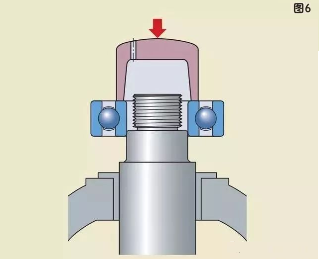 安裝內圈過盈配合的軸承時,不能通過外圈和滾動體把力傳遞給內圈。這會把軸承滾道和滾動體表面敲壞,使軸承在運轉時產生噪音并提前損壞。正確的方法應該用套筒直接把力作用在內圈端面上。