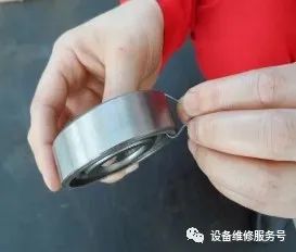 5.轉動內軌或外軌使滾動體從鉛絲絲上滾動壓扁鉛絲